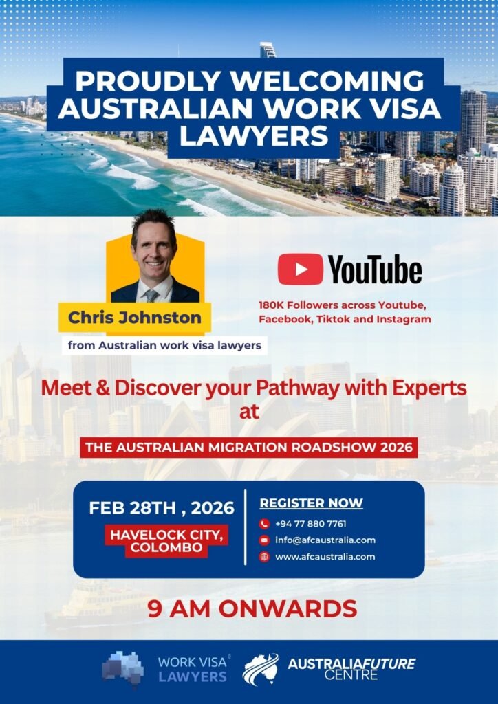 Meet Australian Immigration Lawyer Chris Johnston at the Sri Lanka Migration Expo & Open Day in Colombo and discover genuine Australian visa options tailored to your goals. Learn about: